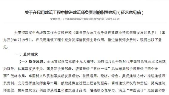 關(guān)于在民用建筑工程中推進建筑師負責制的指導(dǎo)意見(征求意見稿)