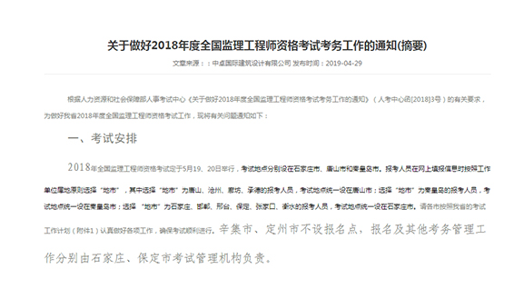 關(guān)于做好2018年度全國監(jiān)理工程師資格考試考務(wù)工作的通知(摘要)